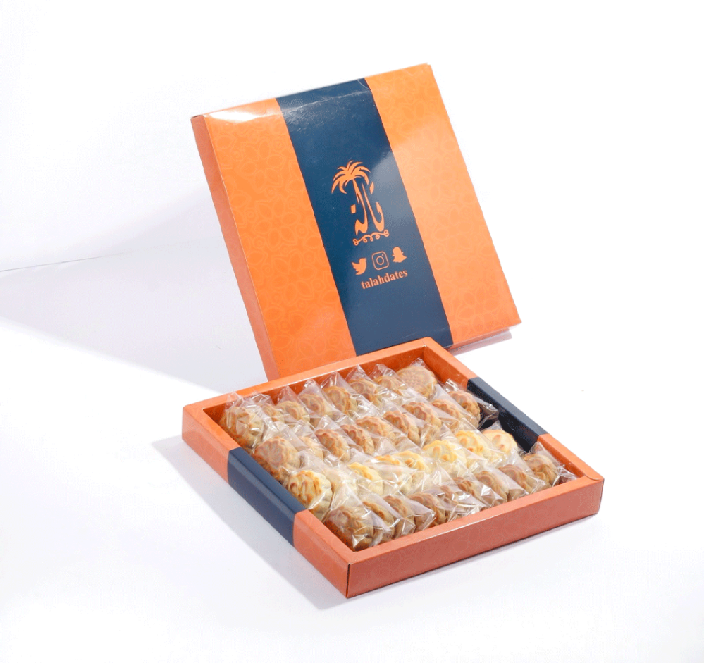 اكتشف التميز مع علبة المعمول المشكل الفاخر من تالة التمور، التي تحتوي على ثلاثة أنواع مميزة من المعمول: