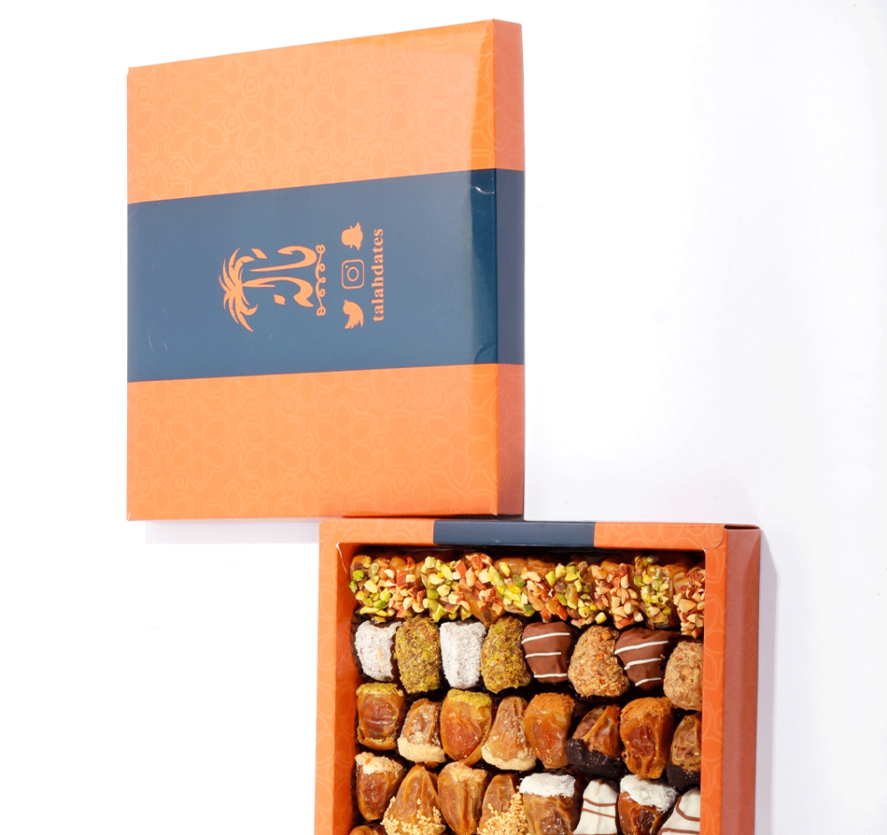 استمتع بتجربة لا تُنسى مع علبة تالة الذهبية التي تضم تشكيلة فاخرة من أجود أنواع التمور المحشية، بتغليف ذهبي راقٍ يناسب جميع المناسبات.
